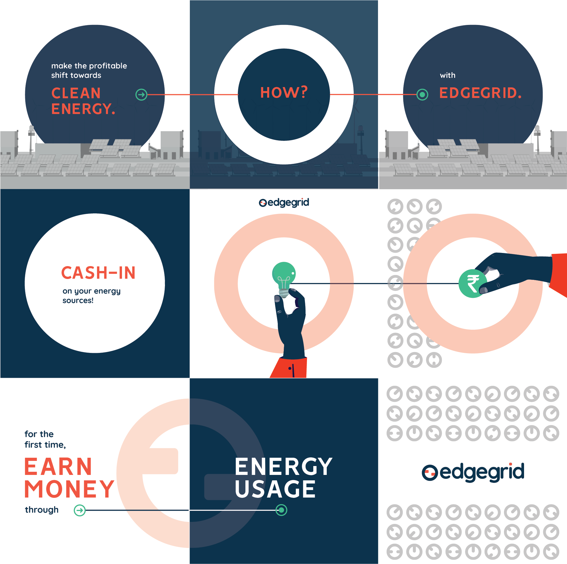 As a designer tasked with marketing Edgegrid's innovative platform, my goal was to create a compelling visual identity that resonated with their mission and target audience. To achieve this, I began by thoroughly understanding the essence of Edgegrid's technology and its impact on the energy sector. Drawing inspiration from their logo, I crafted charming mascots that personified the brand's values and represented different aspects of clean energy. These mascots became endearing ambassadors, making the complex concept of clean energy approachable and engaging for users. For visuals, I used a combination of vibrant colors and modern design elements to capture the spirit of innovation and sustainability.